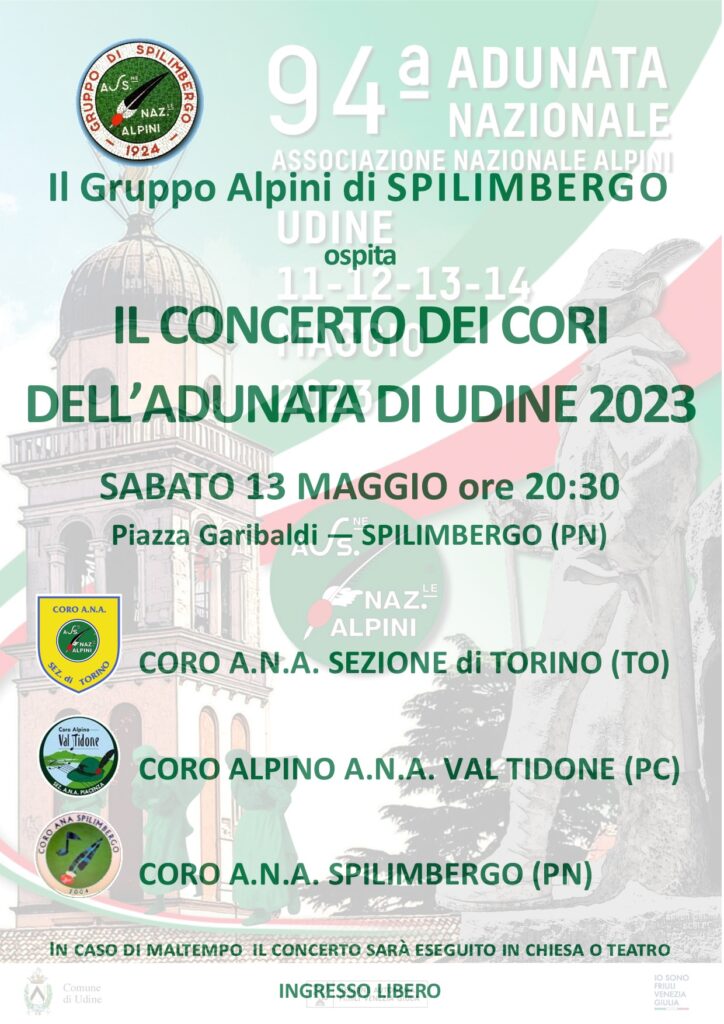 Sabato 13 Maggio ore 21 UDINE: CONCERTO CORI A SPILIMBERGO (PN)
